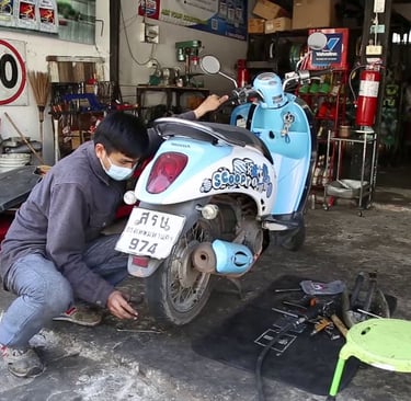 When your motorbike has a flat tire, knowing how to communicate effectively with a local mechanic can help you get the assistance you need quickly. In Thailand, the way you approach a mechanic can make a difference, especially with the specific phrases and polite language common in daily interactions. Here are some phrases that can come in handy.